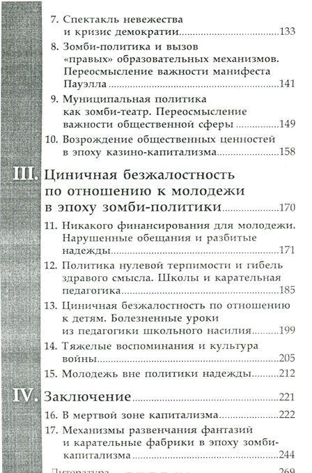 Политика всегда находится за шаг от того, чтобы превратиться в смертоносную машину, топливом для которой являются жизни людей. В своей книге Анри Жиру называет политиков и корпоративных гигантов "зомби" и рассказывает, как они извращают факты и безжалостно превращают граждан собственной страны в расходный материал с единственной, целью - обогатиться и уничтожить в себе последние признаки человеческого. Обличая "живых мертвецов", Жиру утверждает, что образование - это ключ к воспитанию критического мышления и активной позиции среди населения.