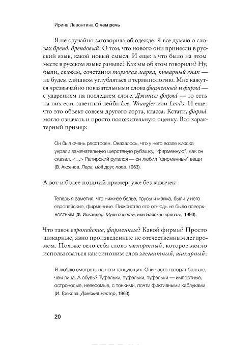 "Удивительная книга Ирины Левонтиной, лингвиста и филолога, уникальна: не знаю другой книги, в которой строгое научное содержание столь элегантно сочеталось бы с простотой изложения, остроумием и полным бесстрашием. Она опрокидывает расхожие мнения, прочищает снобское отношение к языку, примиряет старших с младшими, учит мудрости и терпению."