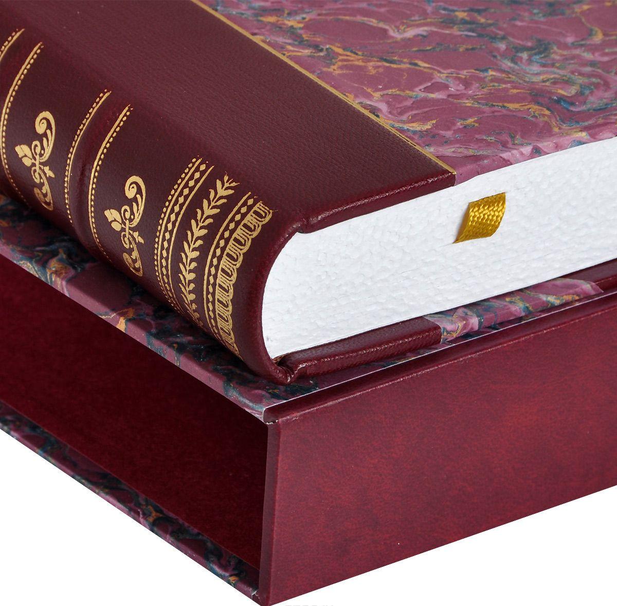 Стильно оформленное подарочное издание с шелковым ляссе. Переплет выполнен из натуральной кожи мастерами классического переплета по индивидуальному заказу по старинным технологиям и украшен золотым и блинтовым тиснением. Трехсторонний обрез ошкуренный и торшонированный. Книга вложена в подарочный футляр. Издание содержит сертификат.