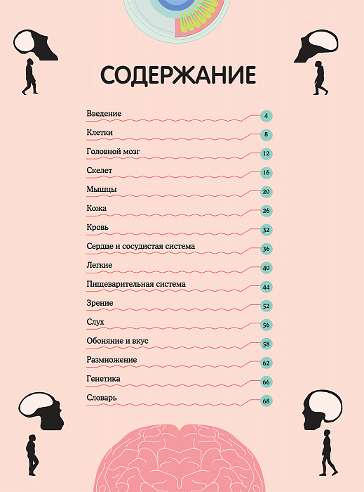 Эта книга познакомит вас со строением человеческого организма. Вы узнаете, какие органы есть в нашем теле, как они взаимосвязаны, насколько важные задачи выполняют и как работают. Вся информация воспринимается легко благодаря большим и красочным иллюстрациям. Вы сможете открыть для себя удивительные особенности строения некоторых животных и почерпнуть множество интересных сведений. Вам станет известно, какой размер мозга был у наших предков, как ухо воспринимает звуки, почему дети похожи на родителей и множество других интересных фактов.