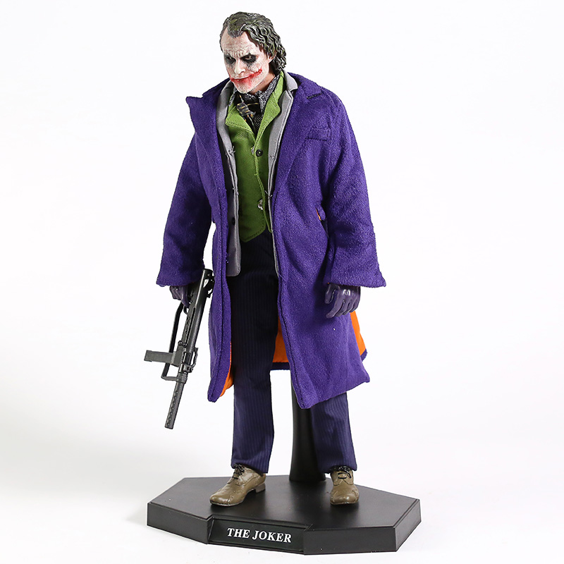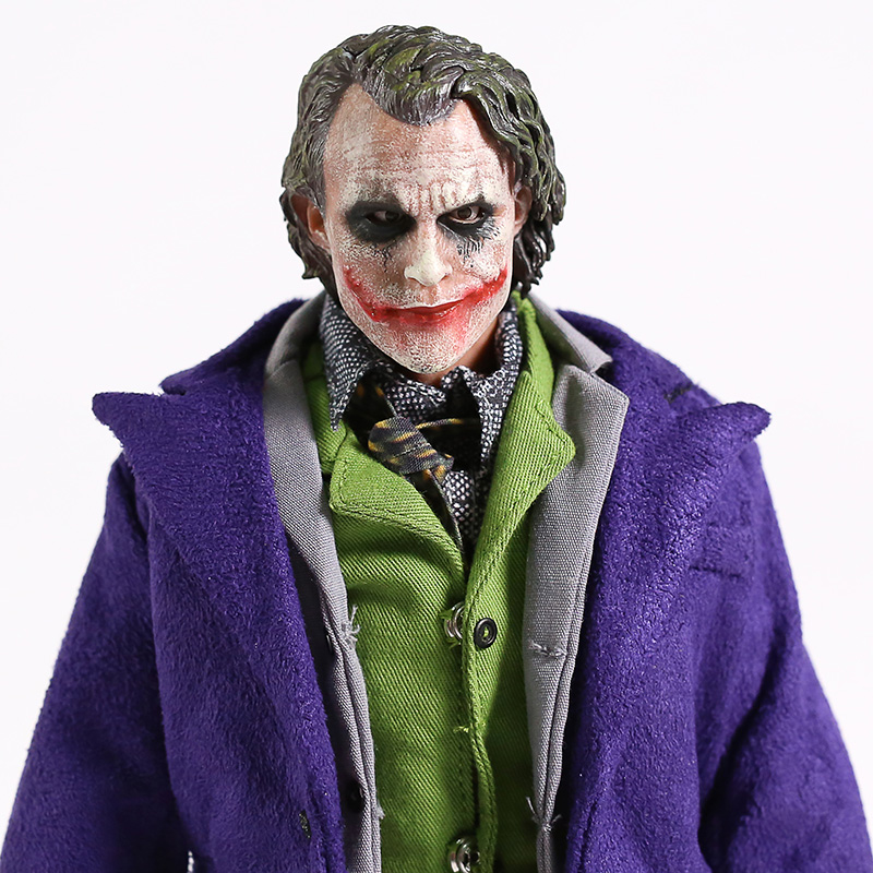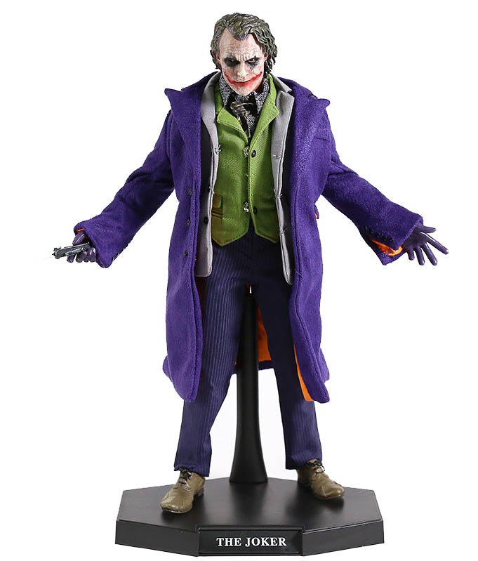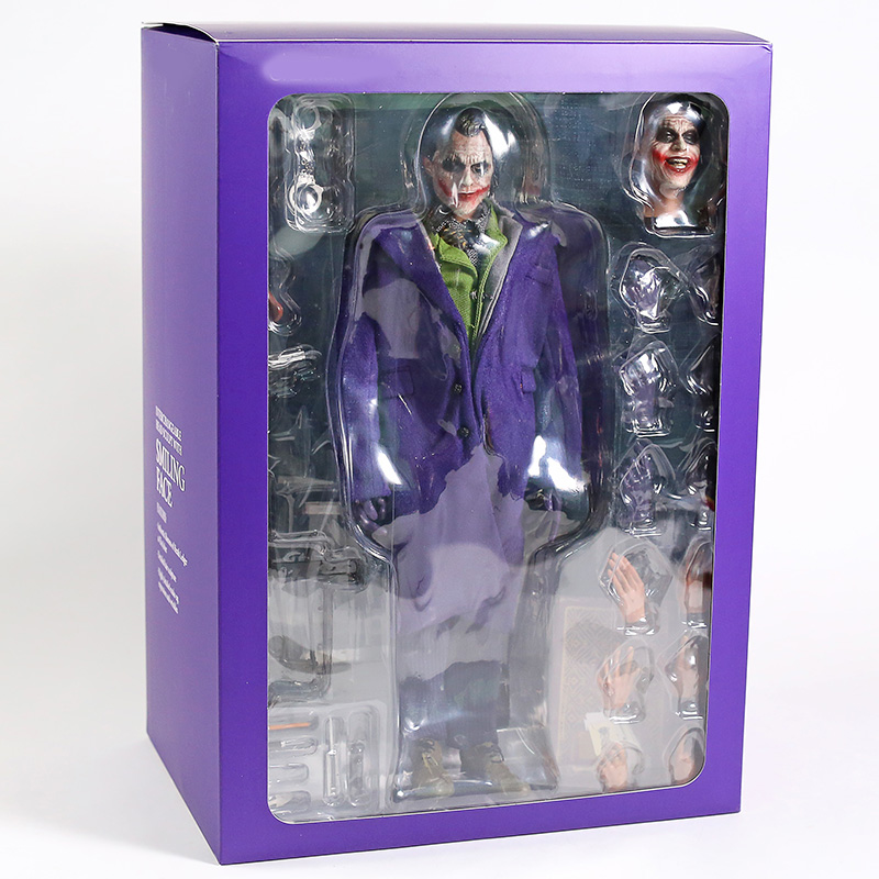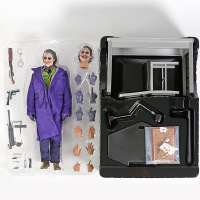 The Dark Knight: The Joker 1/6 Action Figure - это премиум экшен-фигурка Джокера по трилогии Темный Рыцарь. У фигурки множество аксессуаров в комплекте: 1х автомат, 1х пистолет, 1х нож, 1х наручники, 6 пар кистей дополнительных. В фигурки тряпичная одежда, которую можно снимать. У игрушки двигаются суставы ног и рук.