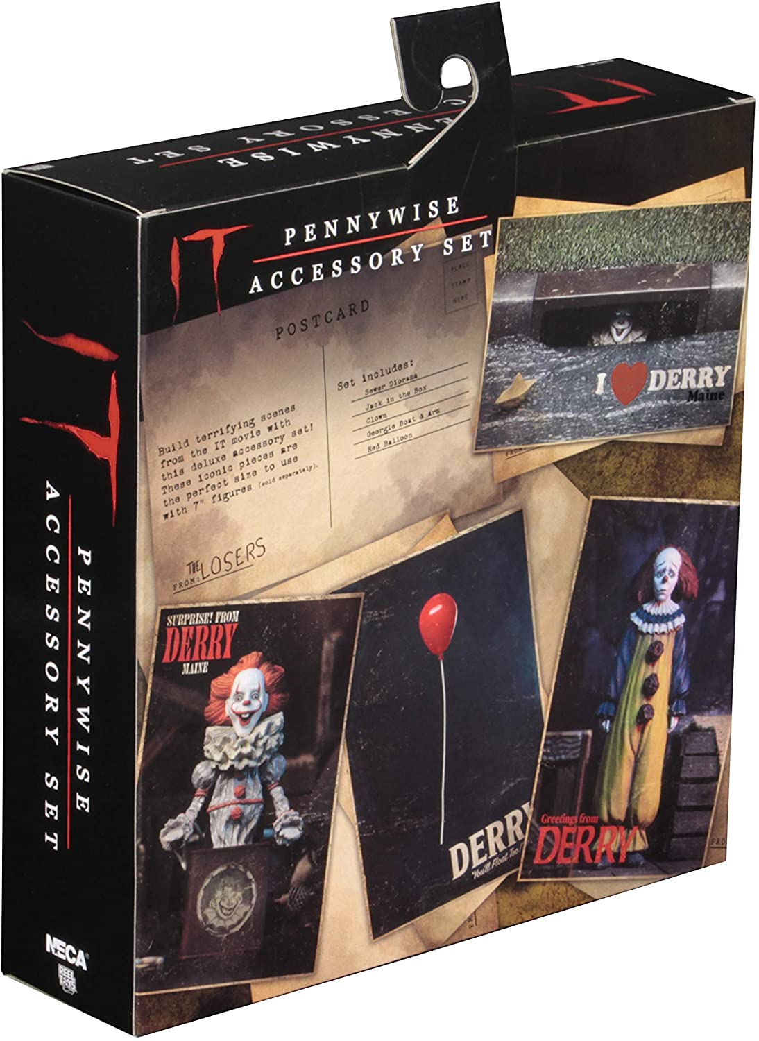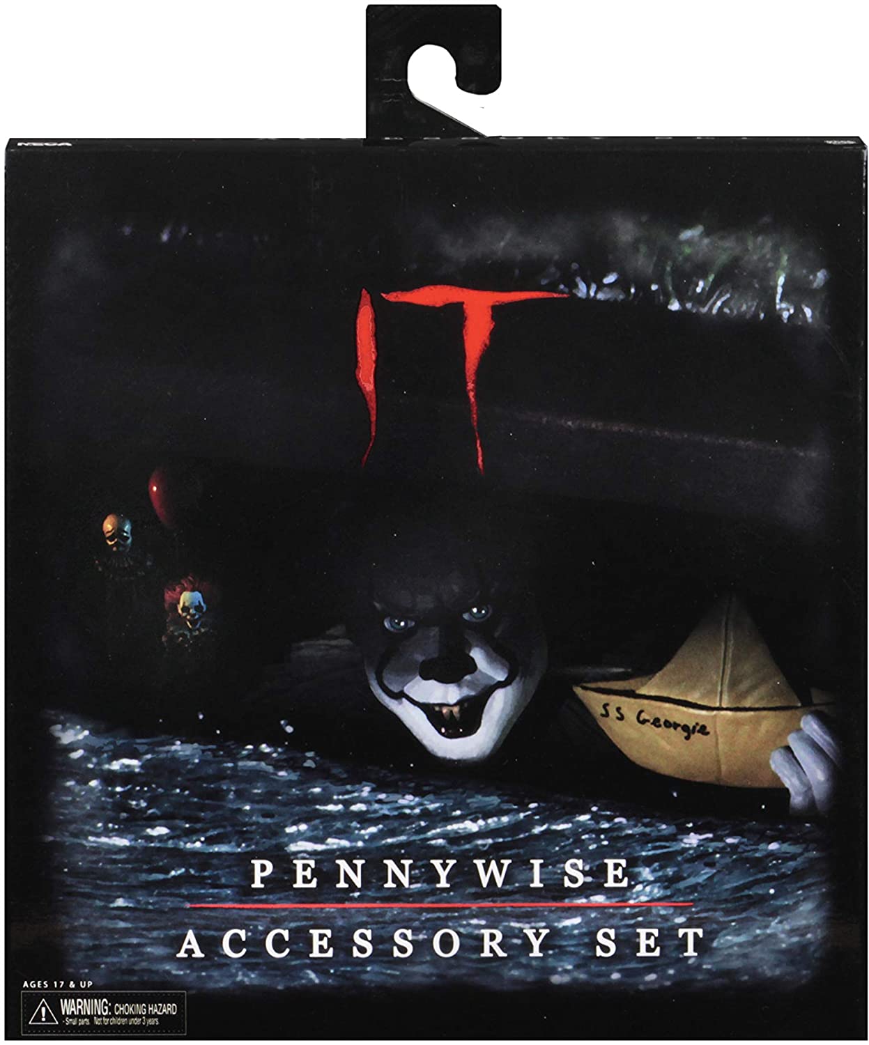 NECA IT Pennywise Accessory Set - это набор делюкс аксессуаров по фильму ОНО, которые будут хорошим дополнением, если у вас есть уже фигурки клоуна Пеннивайза. Набор позволит вам воссоздать сцены из фильма. В комплект входит: 1х тротуар с прорезью в канализацию, 1х голова с плечами из канализации смотрящая, 1х рука мальчика, 1х кораблик, 1х шарик, 2х клоуна.