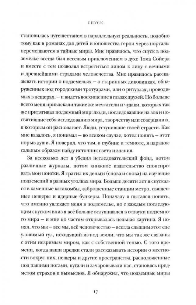 В своей дебютной книге путешественник и журналист Уилл Хант рассказывает об уникальных подземных экспедициях в разных частях света. Вместе с ним мы спустимся в древнейшие шахты на Австралийском континенте, прогуляемся по заброшенным станциям нью-йоркского метро, полюбуемся памятниками палеолита в Пиренеях, совершим паломничество в обитель богов майя. Неутомимый путешественник познакомит нас с людьми, причастными к "нижнему миру"; среди них известные ученые и неуловимые диггеры, старейшины туземных племен и краеведы-энтузиасты. Приобщаясь к тайнам природы и истории, автор ищет ответы на вечные вопросы: кто мы? откуда пришли и куда идем?