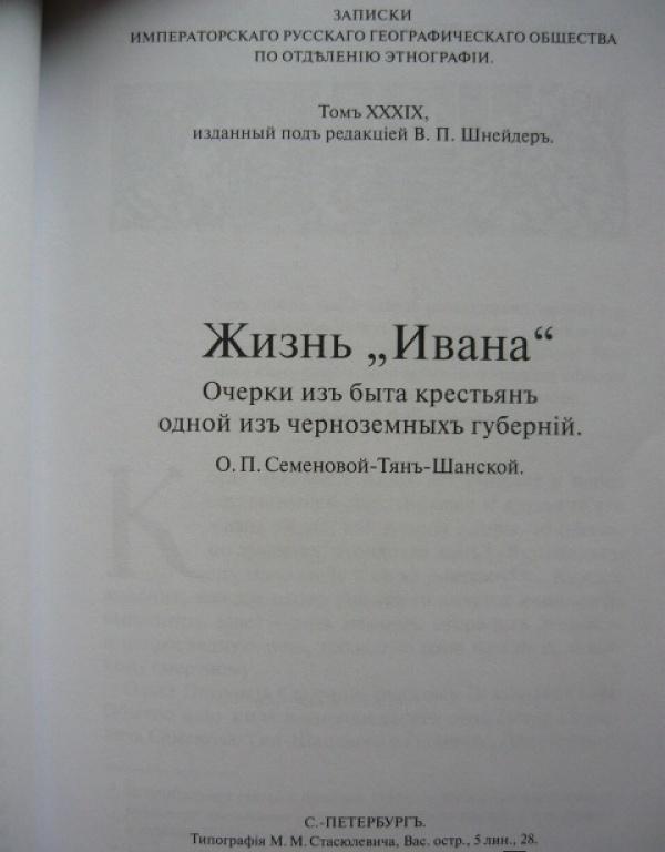 Быт дореволюционной русской деревни в наше время зачастую излишне омрачается или напротив, поэтизируется. Тем большее значение приобретает беспристрастный взгляд очевидца. Ольга Семенова-Тян-Шанская (1863-1906) - дочь знаменитого географа и путешественника и сама этнограф - на протяжении многих лет, взяв за объект исследования жизнь крестьянина - "Ивана" из села в Рязанской губернии, добросовестно записывала все, что имело отношение к быту тамошних крестьян. В результате получилась удивительная книга, насыщенная фактами из жизни наших предков, книга о самобытной культуре, исчезнувшей во времени.