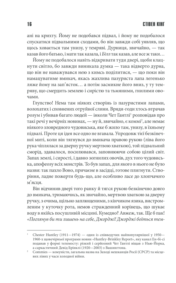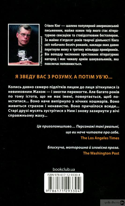 Колись давно семеро підлітків лицем до лиця зіткнулися із невимовним Жахом — і змогли перемогти. Але багато років по тому істота, що не має імені, повертається, щоб помститися... Воно наче випірнуло з нічних кошмарів. Воно живиться страхом і ненавистю. Воно причаїлося всюди... Старі друзі мусять зустрітися з Ним і знову зазирнути у вічі справжньому жаху...