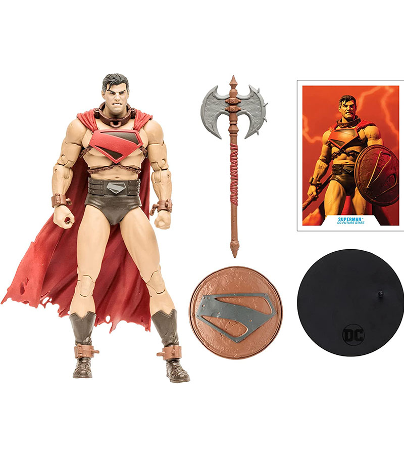 DC Multiverse: Superman (Future State: Worlds of WAR) - это экшн-фигурка Супермен по комиксам от DC, изображен в своей гладиаторской одежде из боев на арене Warworld.