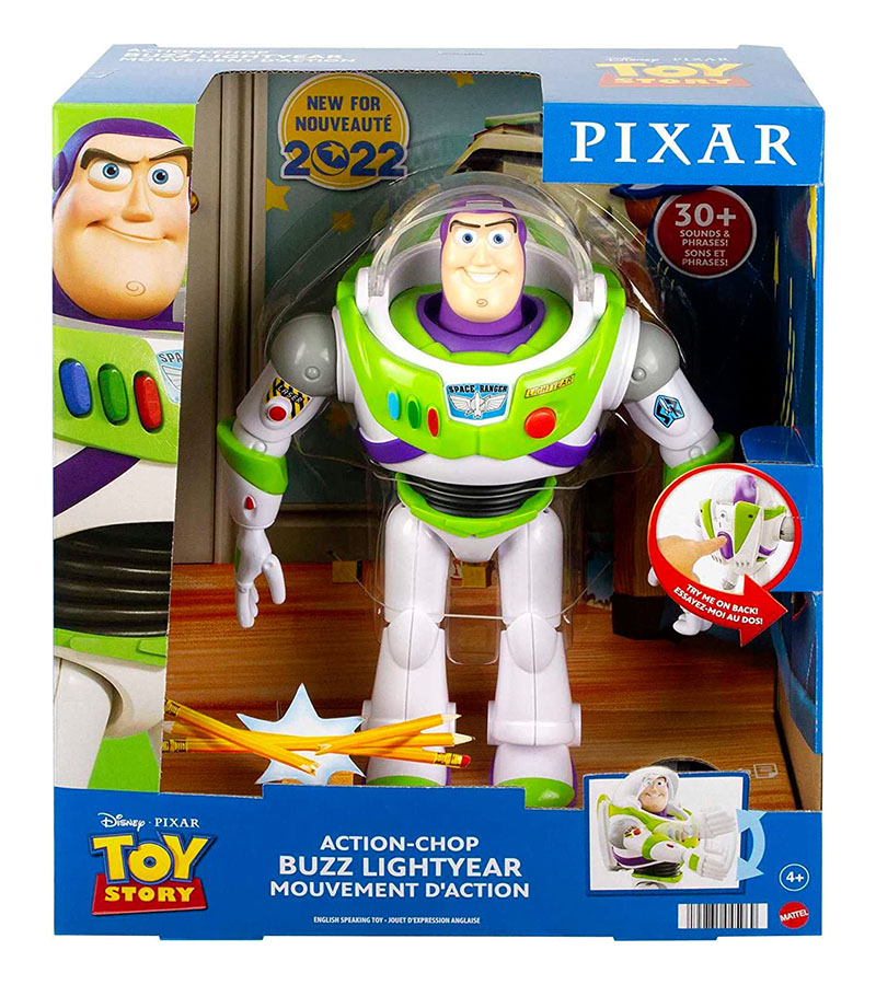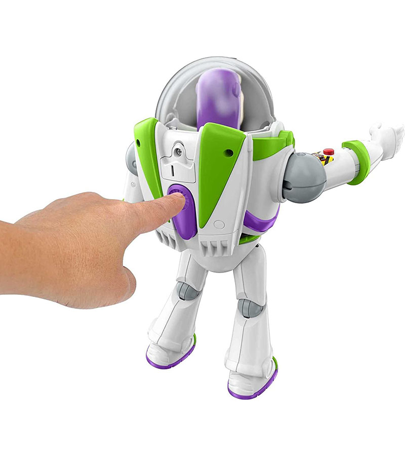Фигурка издает более 30 фраз из фильмов «История игрушек». Базз Лайтер обладает впечатляющим рубящим действием в стиле карате, активируемым кнопкой на его спине и сопровождаемым криком, достойным боевых искусств.