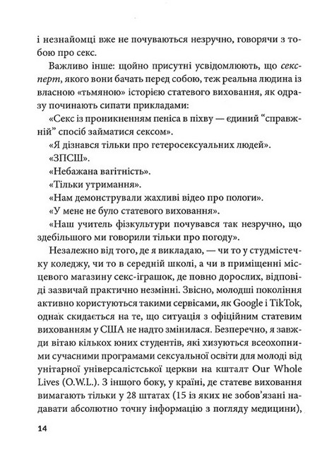 Авторка досліджує сексуальність у всіх її проявах та нормалізує будь-які відносини за взаємною згодою — від традиційних гетеросексуальних до поліаморних та ЛГБТіК+. До кожного з розділів авторка додала робочі аркуші, вправи і контрольні запитання, опрацювавши які, кожен зможе зробити своє сексуальне життя яскравим, розкутим, наповненим несподіваними відкриттями та приємними дослідженнями.Отзывы